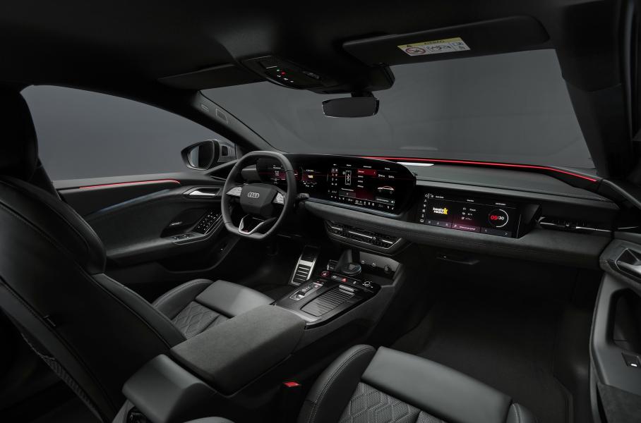 В салоне что у лифтбека, что у универсала изогнутая OLED-панель, объединяющая цифровую «приборку» (11,9 дюйма) и основной дисплей (14,5 дюйма). За доплату предложат отдельный экран для пассажира (10,9 дюйма), «проекционник» с дополненной реальностью и самозатемняющуюся панорамную крышу на полимерно-диспергированных жидких кристаллах. Мультимедиа A6 e-tron поддерживает сторонние приложения и обновляется «по воздуху». А голосовой ассистент глубоко интегрирован в бортовую сеть, может самообучаться и отдавать некоторые запросы ChatGPT.