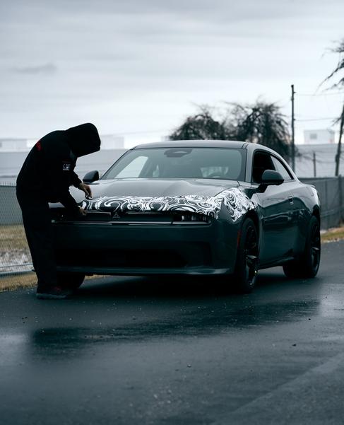 Новинка похожа на снятый с производства масл-карВизуально предсерийный образец отличается от прототипа, показанного летом 2022 года, новыми зеркалами заднего вида, зарядным лючком на левом заднем крыле, угловатой оптикой и спойлером на крышке багажника. Конечно, американский автопроизводитель ожидаемо пошёл по пути упрощения Charger Daytona SRT на пути к конвейеру.