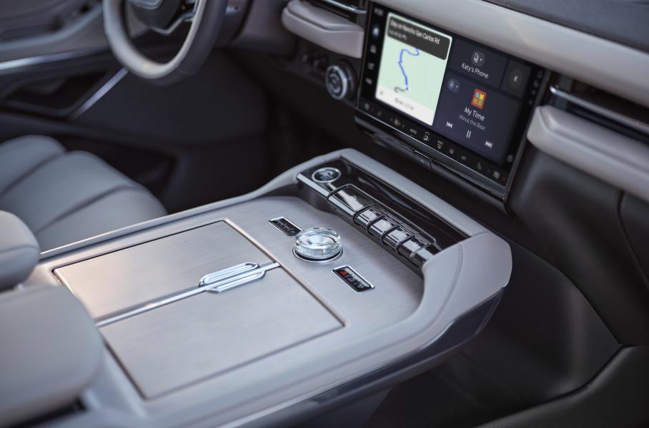 Для внедорожника доступны колесные диски диаметром 22 либо 24 дюйма, на крыше имеются рейлинги, а главное нововведение — новая багажная дверь, которая разделена на две части: нижняя откидывается, а верхние две трети поднимаются. Из оснащения заявлены аудиосистема Revel Ultima 3D с 28 динамиками, раздельные кресла на втором ряду с подогревом, вентиляцией и массажем, а также полуавтопилот BlueCruise, который позволяет водителю убрать руки с руля во время движения по шоссе. Для смены полосы теперь достаточно просто включить поворотник. Помимо всего перечисленного, Navigator получил и адаптивную подвеску.