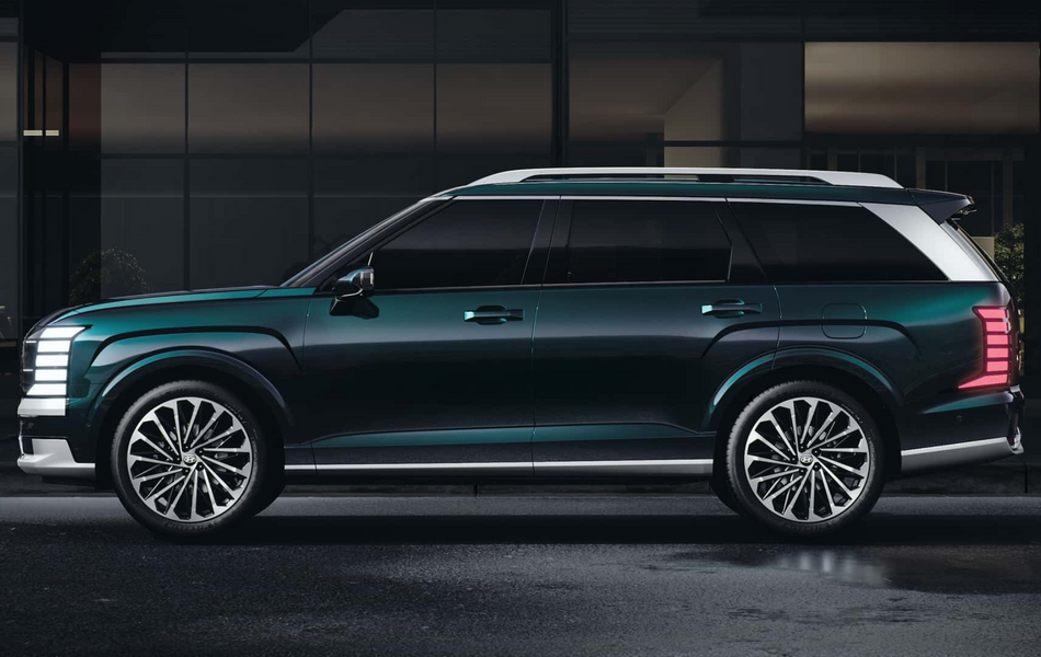 В салоне переделанного флагмана могут уместиться до девяти человекВероятно, горизонтальные «штрихи» на передке Palisade — это светодиодные дневные ходовые огни, а основные блоки фар размещены между ними и решеткой радиатора. Также освещенная полоса видна в верхней части решетки. ДХО сзади вторят фонари, выполненные в том же стиле, но с шестью полосками вместо пяти.