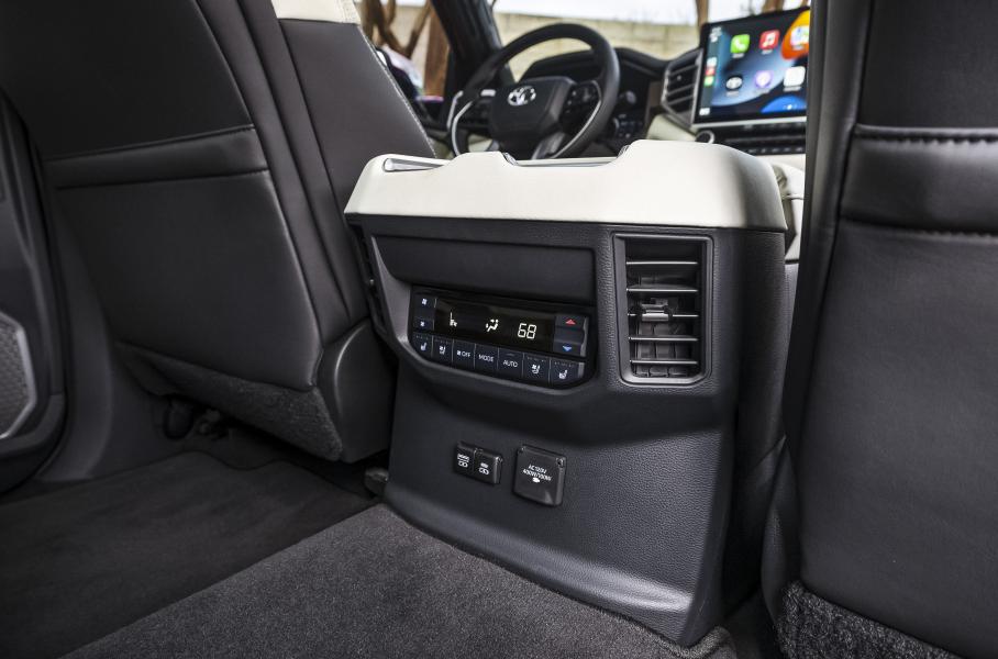 Полноприводной Sequoia можно сделать за доплату — причем это будет простенький part-time, а не Multi-Mode 4WD с центральным дифференциалом Torsen, как на машине предыдущего поколения. В списке опций внедорожника числятся камера кругового обзора, 12,3-дюймовая цифровая приборная панель, а также информационно-развлекательная система с дисплеем диагональю от 8 до 14 дюймов и панорамное остекление. Топовые версии дополнят 22-дюймовыми колесными дисками и отделкой интерьера натуральным деревом.
