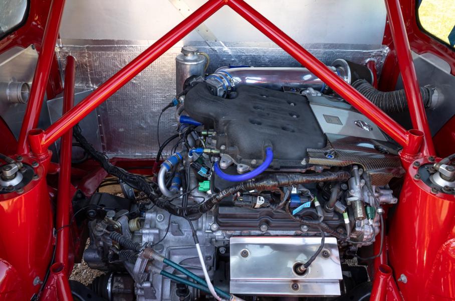 Концепт Micra 350SR имеет среднемоторную компоновку, поэтому спереди у него алюминиевый бензобак. Двигатель создан на базе «атмосферника» V6 3.5 от кроссовера Murano, которому добавили головку блока цилиндров от 350Z, распредвалы Nismo с высоким подъемом клапанов и модифицированный ЭБУ. Мощность — около 310 лошадиных сил, привод задний, масса — всего 1200 килограммов. Помимо сумасшедшего мотора, у «супермикры» также есть каркас безопасности, тормоза Brembo и полностью настраиваемая подвеска Powerflex.