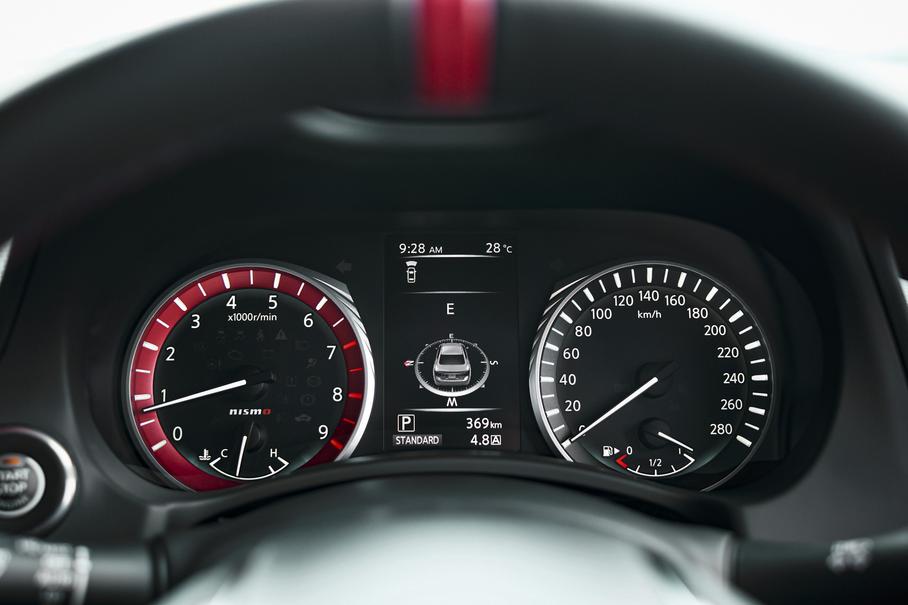Салон автомобиля отличается высоким качеством отделки, что и у популярной модели 400R. Спорткар оснащен обтянутым кожей рулем с красным логотипом Nismo, размеченным до 280 километров в час спидометром, а также красным тахометром, подчеркивающим дизайн автомобиля. За дополнительную плату предлагаются черные спортивные сиденья Recaro с замшевой обивкой, которые расположены таким образом, чтобы надежно удерживать водителя в кресле при прохождении крутых поворотов. Nissan предлагает новинку в пяти цветах кузова, в том числе эксклюзивном сером оттенке Nismo Stealth.