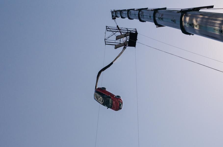 Кроссовер подняли на высоту 65 метров и сбросили внизКомпания Nissan установила рекорд Книги Гиннесса, который звучит как «самый высокий прыжок на автомобиле с тарзанки», пишет сайт 110km.ru. Для этого краном на высоту 65 метров подняли специальную «клетку» с кроссовером Qashqai, предварительно разобрав его салон и оставив лишь кресло водителя и приборную панель. Саму «клетку» сконструировали таким образом, чтобы она выдерживала вес автомобиля как в горизонтальном положении, так и под углом 45 градусов, необходимым для придания нужного импульса перед прыжком.