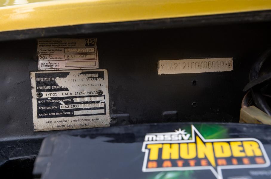 Происхождение машины понятно по подкапотной табличке на греческом языке. Чуть выше — данные об эмали PPG, которой машину покрасили в Греции