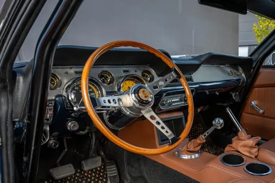 Рестомод на базе классического кабриолета 1968 года оснащен современным двигателем V8Кузов машины стилизован под «заряженную» версию Shelby GT500, а под капотом установлен современный двигатель Coyote V8, сопряженный с 5-ступенчатой механической коробкой передач. Салон автомобиля отделан натуральной кожей. Помимо типичных для рестомодов улучшений, Mustang оснастили шинами Nitto Ridge Grappler и полноразмерным запасным колесом на крышке багажника.