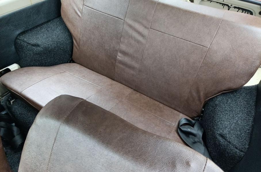 Бежевый кузов, коричневый салон и полный минимализм: нет даже внутренней накладки на крышке багажника! О шумоизоляции пола никто не думал, проводка без изоляции, а кнопка клаксона на новом автомобиле отсутствует. Зато коррозии на фотографиях не видно: только поверхностные рыжики на передних дисках и креплениях под капотом. Техника типичная: двухцилиндровый карбюраторный 749-кубовый мотор (33 л.с., 50 Нм) и 4-ступенчатая «механика».
