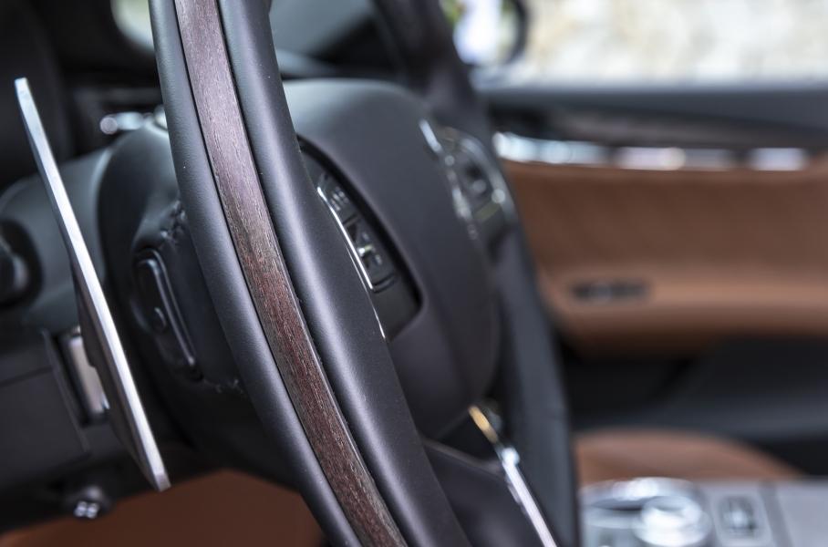 Оба автомобиля сделаны в рамках программы персонализации FuoriserieОбе новинки демонстрируют возможности запущенной четыре года назад программы Maserati Fuoriserie. Седан Quattroporte Grand Finale окрашен мерцающей синей эмалью Blu Nobile, причем она используется и для углепластикового обвеса. Тормозные суппорты выполнены из шлифованного алюминия. Если открыть капот, то станет видна кастомная крышка двигателя с подписями трудившихся над машиной дизайнеров и инженеров, под ней — «восьмерка» 3.8 (580 л.с., 729 Нм). По просьбе клиента обод руля украшен вставками из капа, а передние стойки затянуты черной кожей.