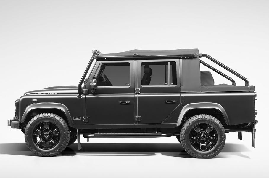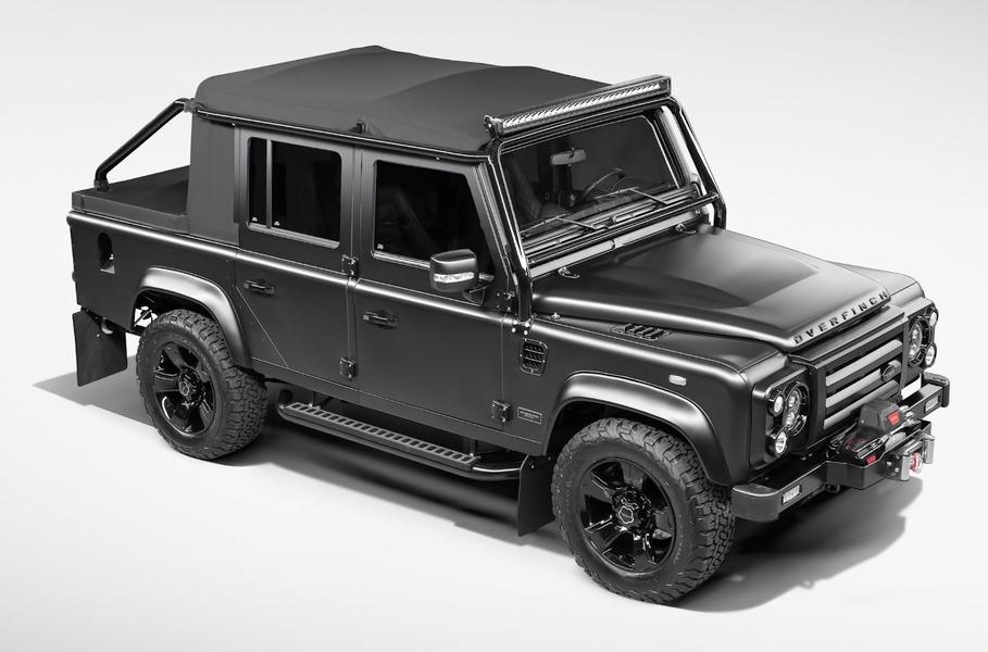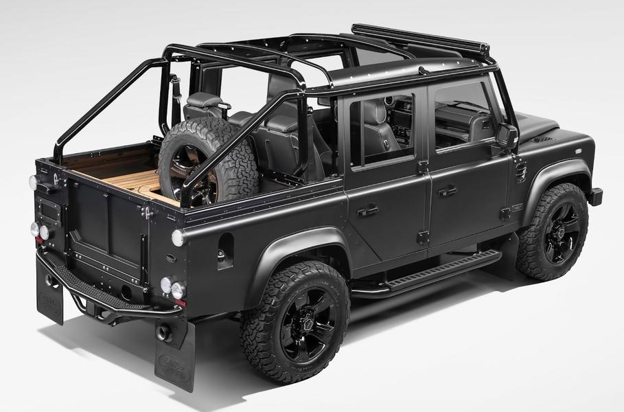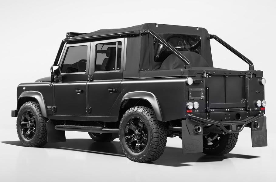 Кузов внедорожника выкрашен в черный колер Obsidian Satin Black. Колеса — 18-дюймовые легкосплавные Apollo, обутые в шины BF Goodrich. Передняя и задняя оптика собраны на светодиодах. Также на машине стоят зеркала с электроприводом и алюминиевые дверные ручки; решетка радиатора оформлена в стиле Defender SVX. Лебедка — Warn VR Evo с тяговым усилием 4,5 тонны.