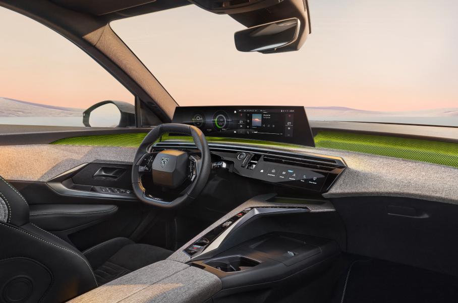 Интерьер у e-5008 точно такой же, как у дорогих версий e-3008. Есть i-Cockpit с 21-дюймовым слегка изогнутым дисплеем, возвышающийся над передней панелью, левая половина которого отведена под показатели приборов, а правая — под управление мультимедийной системой. По центру — настраиваемые кнопки быстрого доступа i-Toggles, всего их 10. Рулевое колесо усечено сверху и снизу, на нем расположены сенсорные элементы управления. Будет у кроссовера и версия GT, отличия которой сводятся к более спортивному оформлению салона, 20-дюймовым дискам и наличию адаптивного круиз-контроля.