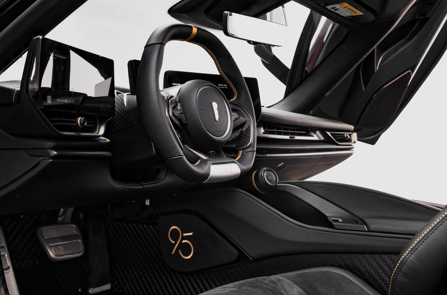 Водитель и пассажир Battista Novantacinque будут сидеть в креслах, отделанных черной кожей и алькантарой. На коленных подушечках вышито число 95, а табличка с номером шасси и накладки на пороги выполнены в особом дизайне. Другой вид имеют даже алюминиевые шайбы-переключатели. В общем, всё должно подчеркивать уникальность автомобиля, кроме силовой установки.