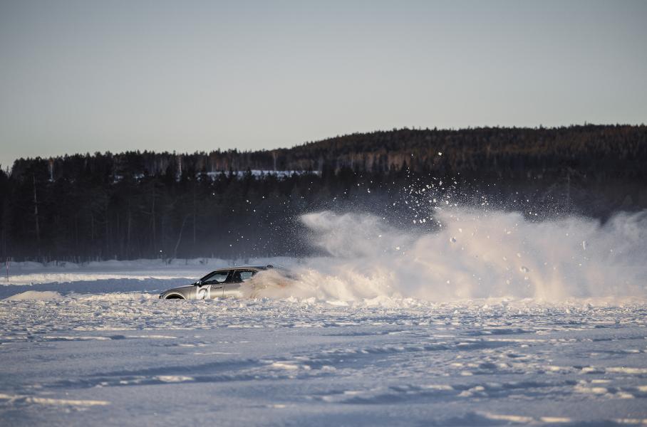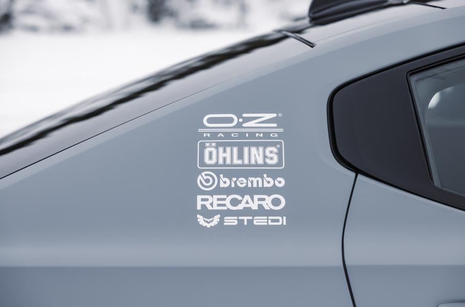 Новинка идеально подойдет для передвижения по дорогам Крайнего Севера«Арктический» электрокар получил увеличенный на 30 миллиметров дорожный просвет (176 мм спереди и 191 мм сзади), 19-дюймовые колесные диски с шипованной резиной, а также более мягкие пружины и регулируемые амортизаторы Öhlins с выносными резервуарами. Прототип оснащен новой системой лонч-контроля с кнопками управления на руле, дополнительной светотехникой и буксировочными проушинами спереди и сзади. Кузов электромобиля выполнили в матовом сером цвете, который дополнен белой ливреей на передних дверях и защитной пластиной из углеродного волокна под передним бампером.