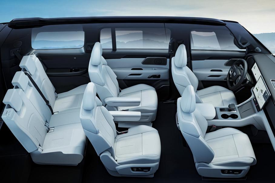 В салоне — три ряда сидений с двумя раздельными креслами на втором ряду, два экрана диагональю 12,3 дюйма (цифровая панель приборов) и 15,7 дюйма (центральный дисплей), плюс еще один 15,6-дюймовый монитор закреплен на потолке. Для модели доступны различные «походные» аксессуары, например, встраиваемая в багажную дверь кухня, тент-палатка и экспедиционный багажник на крышу.