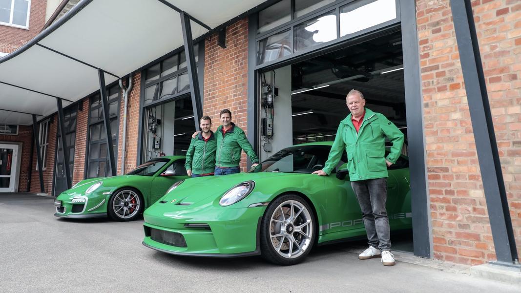История цвета началась в 1992 году, когда Михаэль купил первый Porsche в Essmanngreen, модель 911 Carrera RS 3.6 (964). Затем последовали другие автомобили, в том числе 911 GT3 RS 4.0 (997) и совсем недавно Эссманн купил новый 911 GT3 Touring (992). Сыновья бизнесмена, Майк и Стефан, участвуют в гонках Porsche Sports Cup и, естественно, на гоночных автомобилях тоже есть акценты цвета Essmanngreen.