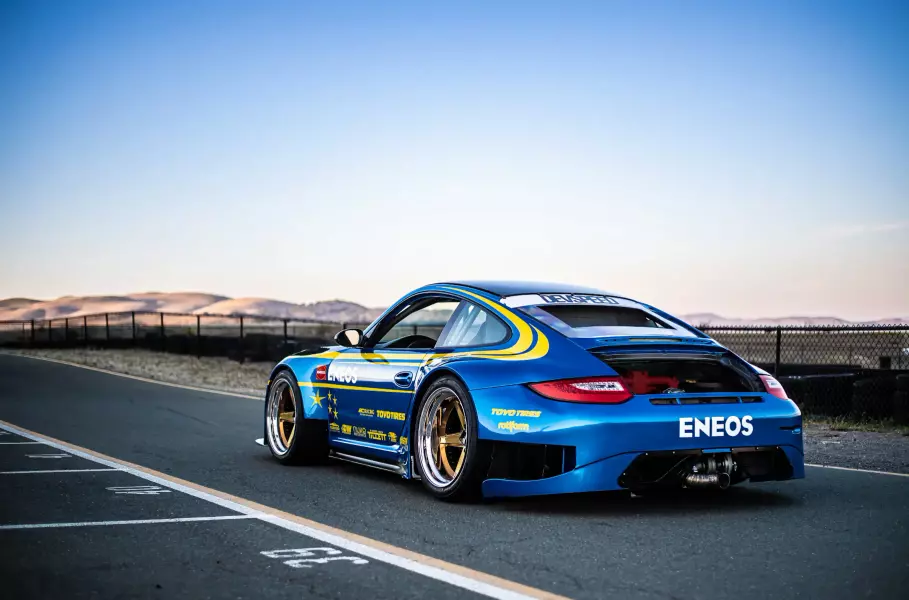 Необычный автомобиль привезла на тюнинг-выставку SEMA компания EneosК Eneos купе Porsche 911 GT3 поколения 997.1 попало не в самом лучшем виде. Прежний владелец практически целиком разобрал автомобиль после аварии, но тем самым облегчил работу свап-гуру Devspeed Motorsports. Вместо штатной оппозитной «шестерки» Мецгера, мастерская решила поставить на спорткар «оппозитник» EJ25 объемом 2,5 литра от Subaru Impreza WRX STI 2008 года. Причем вместе с двигателем у японского седана заимствовали и шестиступенчатую «механику».