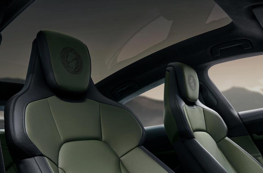 Зарезервированный за Turbo-версиями декор цвета Turbonite в Taycan Turbo S Celestial Jade заменили на лакированное углеволокно. Для отделки салона использовали два вида кожи: стандартную серую Slate Grey и доступную по программе Leather to Sample темно-зеленую Englishgreen. Силовая установка и характеристики остались прежними: 952 лошадиные силы, 1110 Нм крутящего момент, разгон до ста за 2,4 секунды и дальность хода до 634 километров. Электрокар некоторое время будут экспонировать в разных локациях, а в 2025-м продадут на благотворительном аукционе.