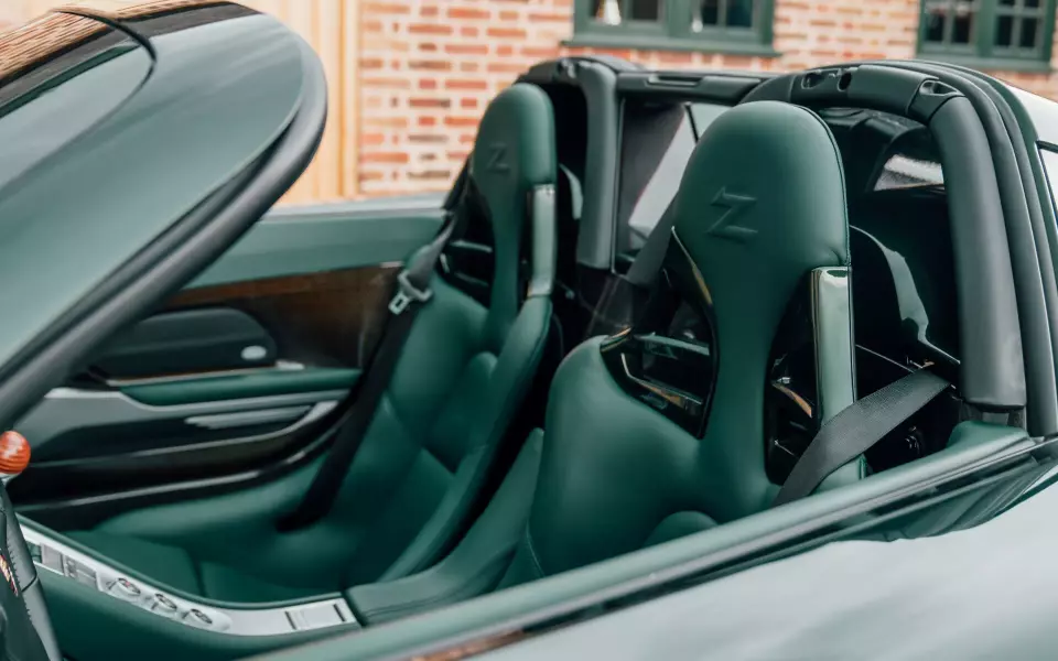 Было сделано всего шесть таких суперкаровВладельцы шести из 1270 выпущенных суперкаров Porsche Carrera GT обратились в ателье Zagato для доработки своих автомобилей. Так на свет появились Porsche Carrera GTZ с множеством новых панелей кузова и особыми цветами. Но только один автомобиль получил эксклюзивный интерьер от итальянских специалистов — сиденья, приборная панель, подлокотники, дверные панели, стойки, козырьки, центральный тоннель и консоль обиты тёмно-зелёной кожей в тон цвету кузова.