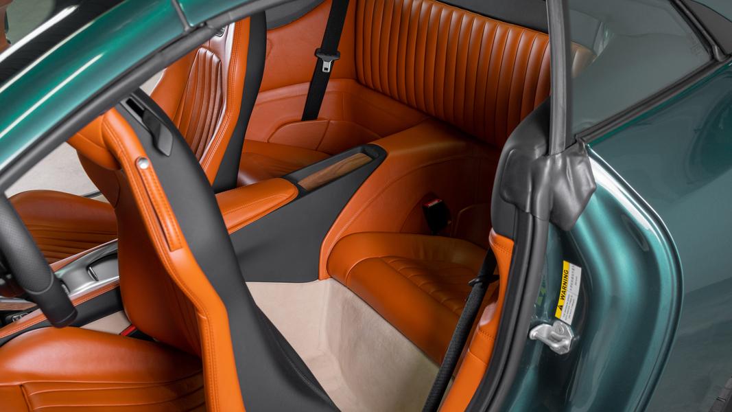 Не менее необычно и оформление салона. По заказу клиента интерьер Portofino отделан рыжей кожей, дополненной тем же материалом чёрного цвета, коричневыми коврами, а накладки на пороги и обрамление блока коробки передач сделано из необычного по меркам спорткаров Ferrari дерева.