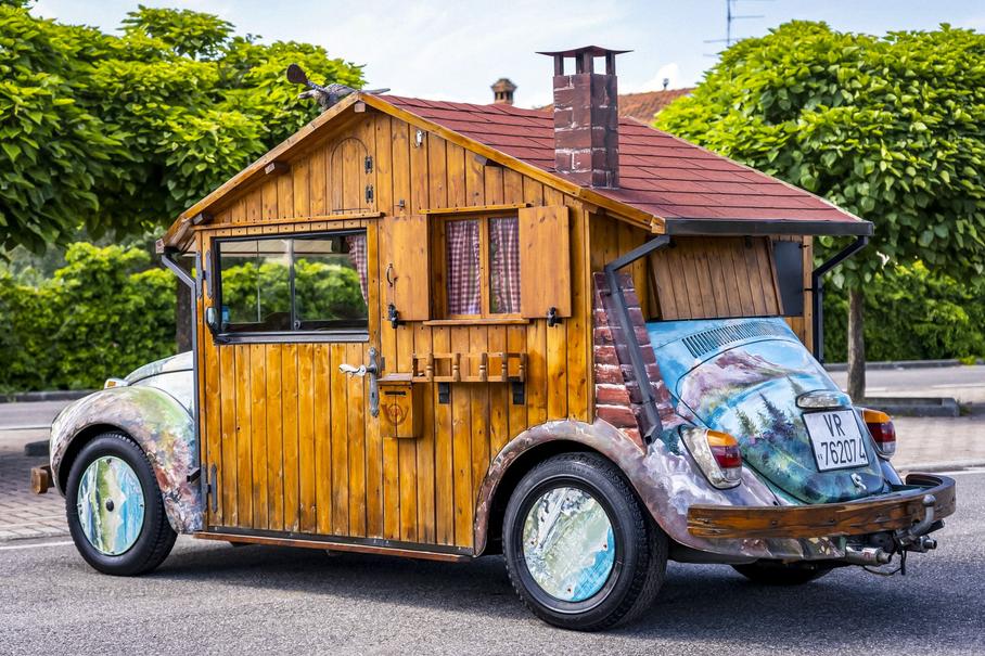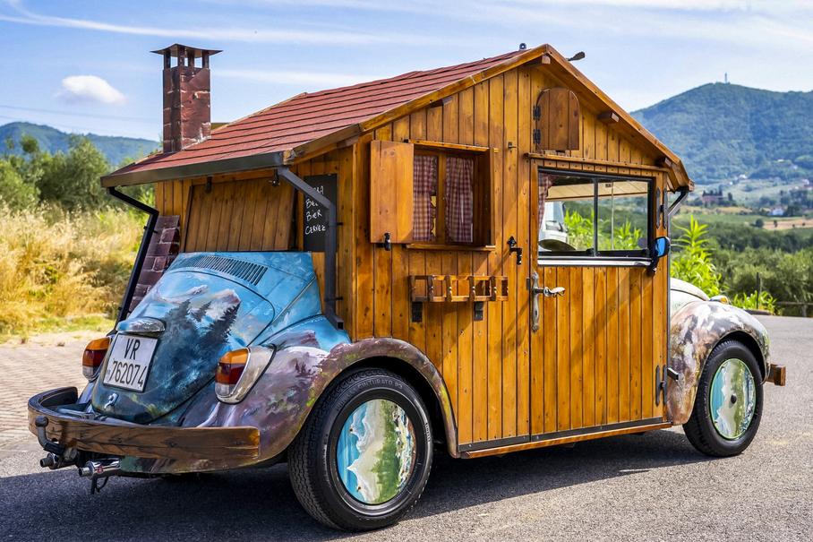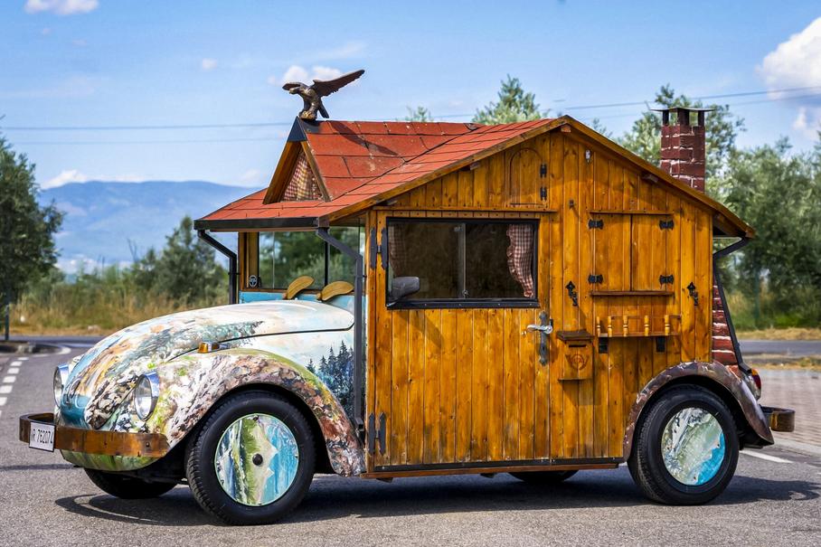 Посмотрите на деревянную избушку, сделанную из классического Volkswagen Beetle