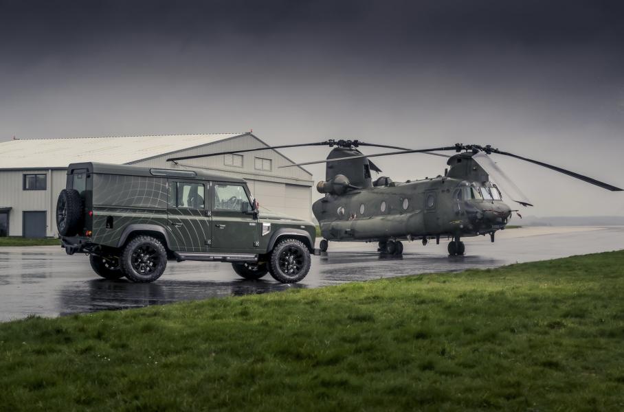 Уникальный внедорожник пустят с молоткаВ дизайне Land Rover Q40 используется комбинация глянцевого и матового темно-зелёного оттенка кузова, который напоминает камуфляж вертолета Chinook. Многие элементы обвеса выполнены из карбона, включая капот, решетку радиатора, расширенные колесные арки и решетки вентиляционных отверстий.