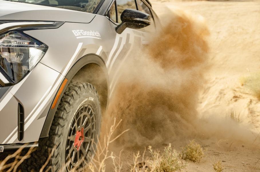 Несмотря на то, что кроссовер изначально позиционируется как модель для легкого бездорожья, небольшие доработки ему всё-таки понадобились. Среди них — защита бампера, стальные листы и шины BFGoodrich All-Terrain T/A K02 на 17-дюймовых дисках Rhino.