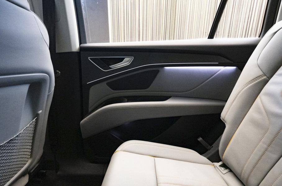 В зависимости от комплектации для электрокроссовера доступны 20-дюймовые колёсные диски, адаптивная оптика и панорамная крыша. Салон машин отделан натуральной кожей. В списке опций числятся мультимедийная система со встроенной навигацией, климат-контроль, электрорегулировки сидений и множество водительских ассистентов.