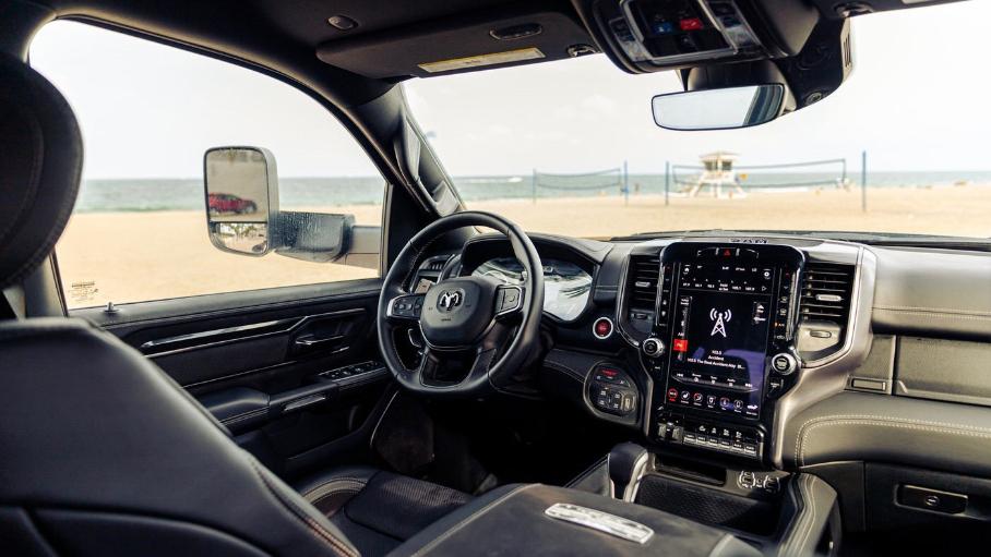 Тюнинг-проект получил название Apocalypse WarlordПри этом родной двигатель Рэма в Apocalypse Manufacturing трогать не стали: в движение Warlord приводит стандартная для 1500 TRX «восьмерка» HEMI объемом 6,2 литра, которая выдает 712 лошадиных сил и 881 Нм крутящего момента. С таким мотором обычный пикап разгоняется с места до 60 миль в час (97 километров в час) за 4,4 секунды, а до 100 миль в час (161 километр в час) — за 10,5. Однако шестиколесный Apocalypse Warlord явно тяжелее, а значит медленнее.