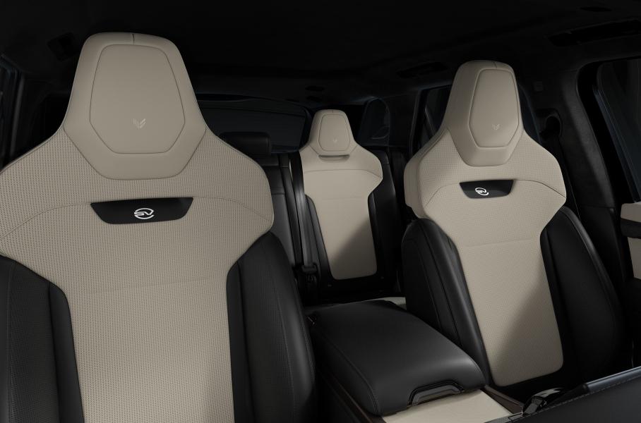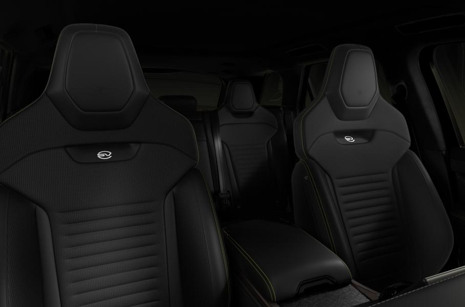 Range Rover Sport SV Gaea олицетворяет Гею — Землю. Внедорожник окрашен в зеленый колер Green Terre Matte, который сочетается с насадками выпускных патрубков из прессованного углеволокна и тормозными суппортами Carbon Bronze. Крыша, как и корпуса боковых зеркал, черная. Для салона предложены две схемы оформления: песочная кожа Caraway Windsor на пару с деревянными вставками Natural Brown Silver Birch либо черный кожзам Ebony с накладками Natural Black-Silver Birch.