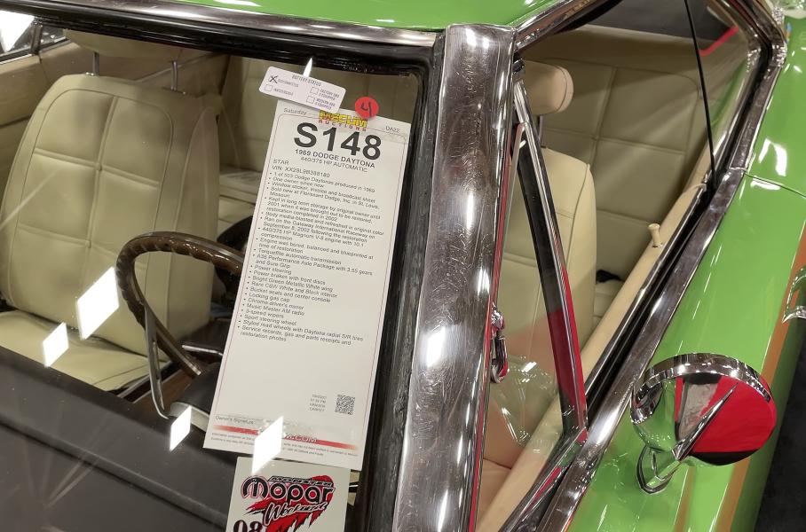 С момента производства и до 2001 года спорткар провел без движения в гараже первого владельца. После длительного простоя Charger прошел глубокую реставрацию, которая заняла около года. В результате работ специалистам удалось сохранить все заводские комплектующие. Кроме того, представленная модель отличается нестандартным салатовым цветом кузова, который сочетается с черно-белым салоном, выполненным из натуральной кожи.