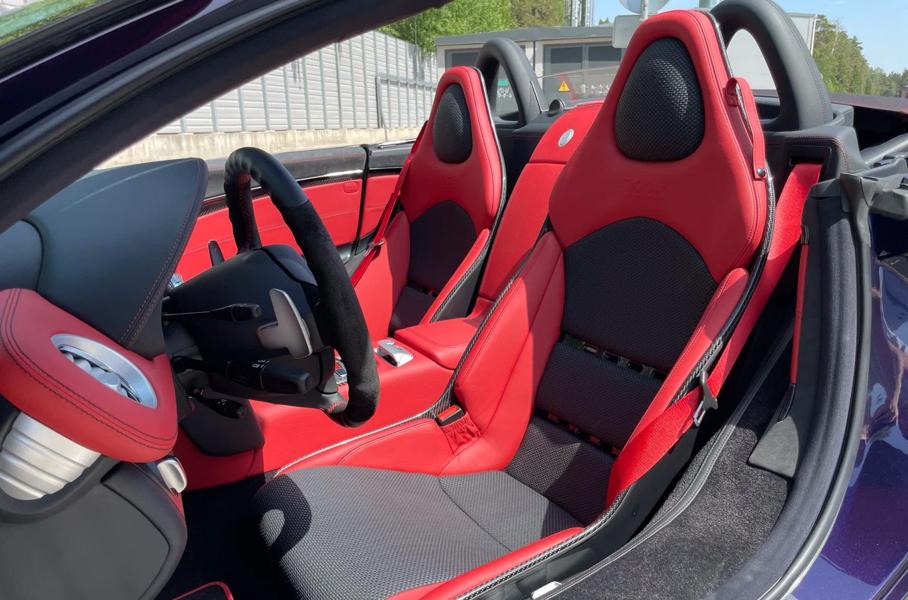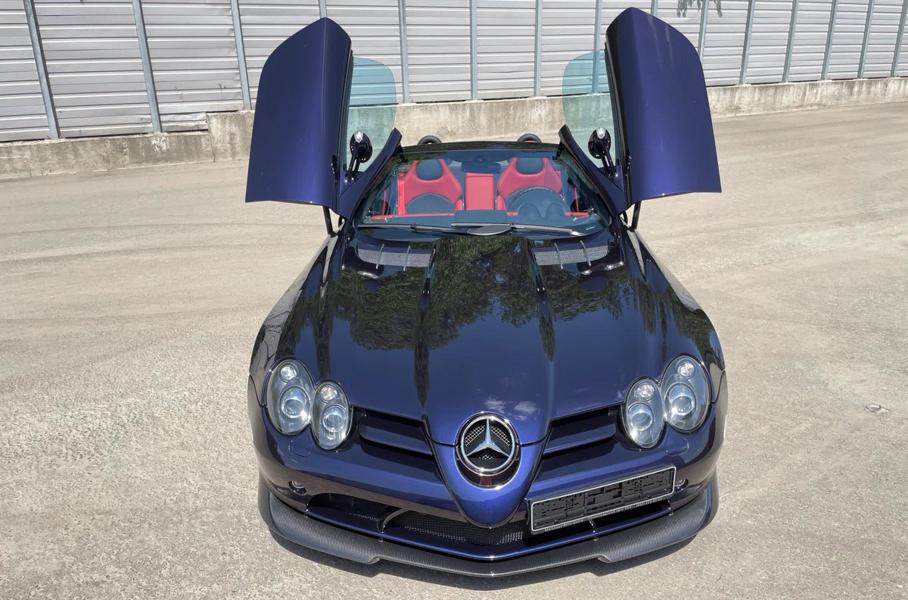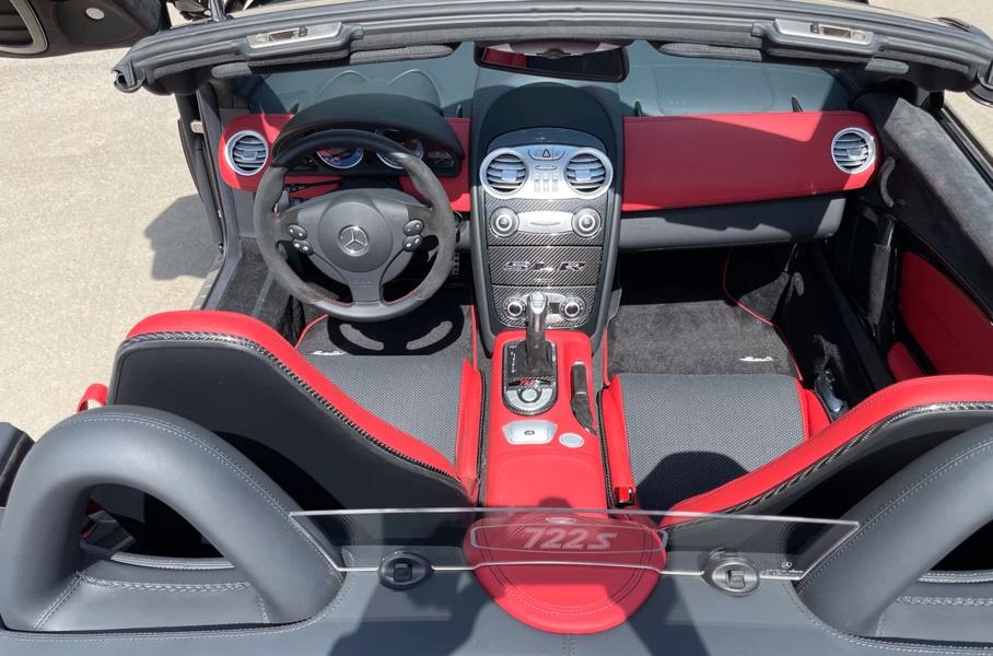 Всего существует 150 подобных спорткаровКупе SLR 722 выпустили в 2006 году в честь победы Стирлинга Мосса в гонке Mille Miglia в 1955 году. Годом позже инженеры представили спорткар со складным верхом. Машина получила компрессорный двигатель V8 5.5 мощностью 650 лошадиных сил и 820 Нм крутящего момента, модернизированную подвеску и усиленные тормоза. До «сотни» родстер разгоняется за 3,7 секунды. Максимальная скорость — 335 километров в час.