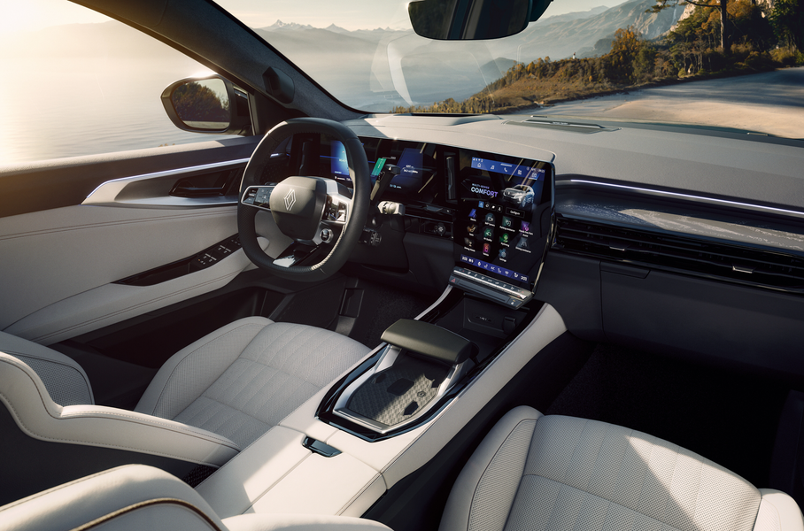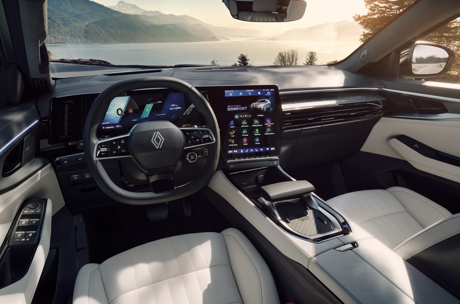 В салоне главным новшеством стала панорамная крыша Solarbay площадью почти два квадратных метра — самая большая в линейке Renault. Многослойное стекло состоит из девяти сегментов, управлять прозрачностью которых можно с помощью голосового ассистента Google. При запуске двигателя Solarbay возвращается к последним примененным настройкам.