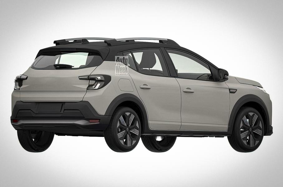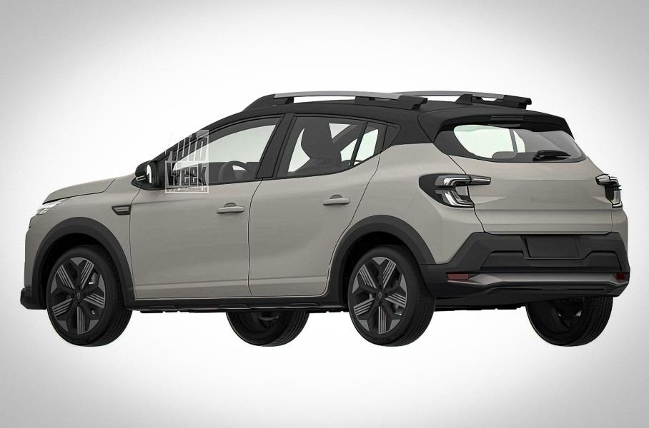 У хэтчбека на патентных изображениях С-образные фонари в стиле Captur, двухуровневая передняя оптика с узкими дневными ходовыми огнями, соединенными тонкой хромированной полосой. Автомобиль запечатлен в двухцветном кузове с черной крышей, рейлингами и пластиковым обвесом, а значит, скорее всего, это вседорожная версия Stepway.