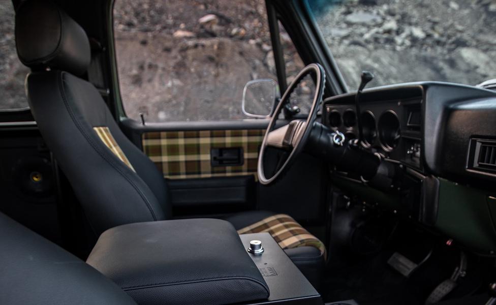 Автомобиль раньше нёс воинскую службу и был пожарным внедорожникомАвтомобиль 1984 года во времена своей молодости работал в частях военно-воздушных сил США в роли машины пожарной охраны, а после демобилизации оказался в руках специалистов Retro Designs. Внедорожник отреставрировали и окрасили его отремонтированный кузов в цвет Army Green, добавили чёрный силовой обвес и новые колеса бронзового оттенка.