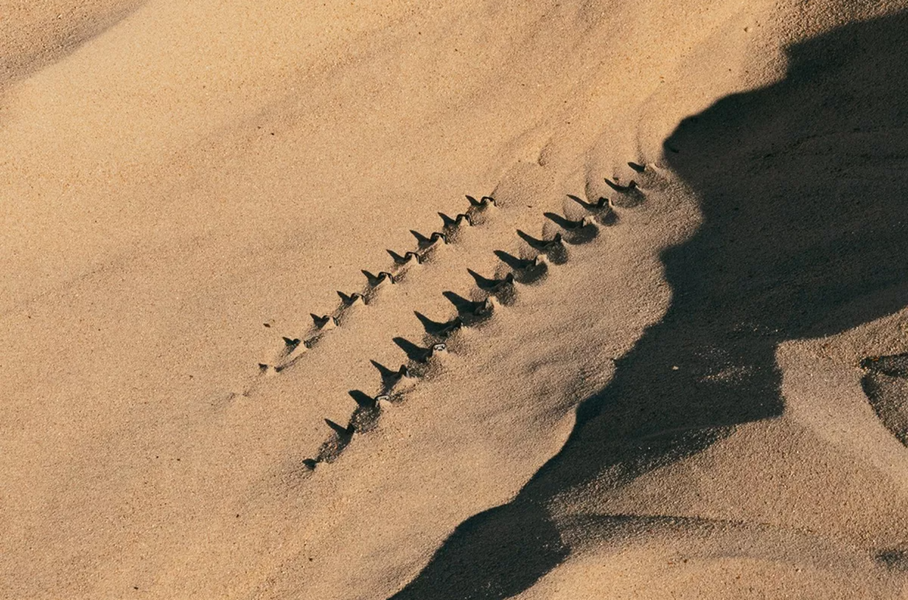 На втором тизере видна часть кузова, принадлежащая, возможно, R1T или R1S. Остальные изображения отвлеченные: на одном видны следы в пустыне, на другом — торчащие из песка шипы.