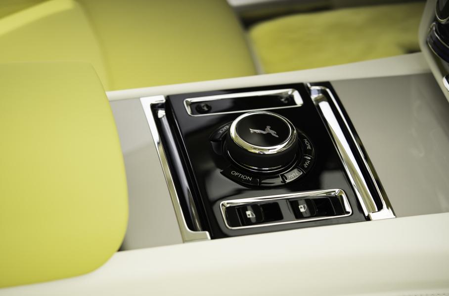 Цветовая схема салона Spectre Semaphore — это комбинация двух лимонных оттенков, Bespoke Lemon Yellow и Citrine Yellow, на контрасте с которыми выступают серый Slate Grey и белый Grace White с прострочкой Lemon Yellow. Под общий антураж подогнали даже интерфейс цифровой «приборки», а также деревянные вставки на передней панели, которые окрасили эмалью Cashmere Grey с добавлением серебристых слюдяных чешуек.