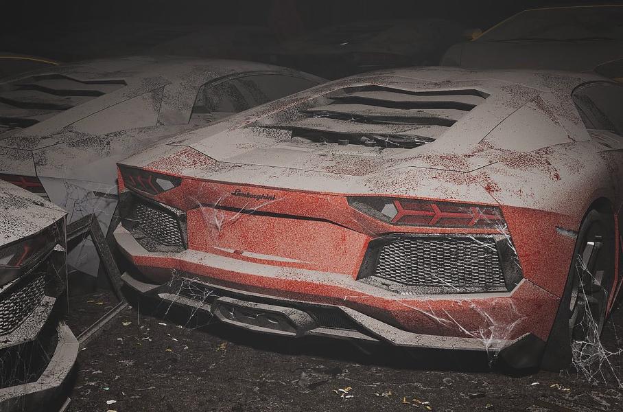 Также Dizzy Viper изобразил Bugatti Chiron Pur Sport с отваливающимся бампером, кое-как втиснутый в тесный сарай, и трековую McLaren Senna с покрытым паутиной антикрылом. Не пожалел иллюстратор и несколько Lamborghini, включая Sian FKP 37 и Centenario, соседствующих с различным мусором. Особо досталось Lamborghini Aventador SVJ — на крыше суперкара оставили стремянку.