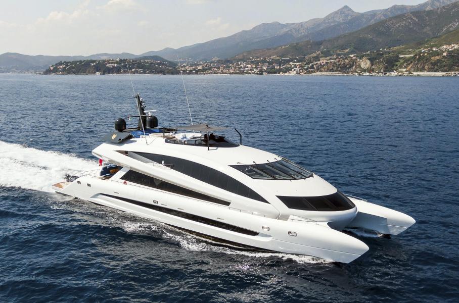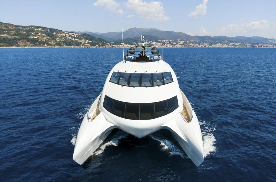 Катамаран способен преодолеть более 4 тысяч километров без дозаправкиСуперкатамаран Royal Falcon One стал совместным проектом австралийской инжиниринговой компании Incat Crowther и шведской верфи Kockums. Дизайн роскошной яхты впервые в истории судостроения разработали дизайнеры Porsche. После спуска на воду в 2019 году катамаран практически не эксплуатировали.