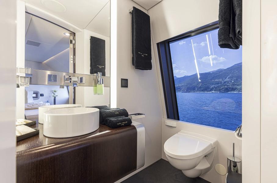 Яхта оборудована пятью пассажирскими каютами и помещениями для экипажа. Для обслуживания судна необходимо десять человек, среди которых капитан, механики и повара. На борту катамарана находятся несколько бассейнов и баров, а также площадки с шезлонгами, открытые балконы и джакузи.