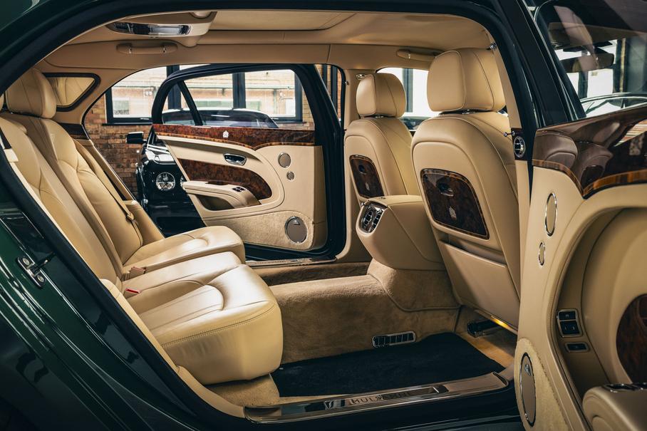 На этом седане по своим монаршим делам ездила Елизавета IIКоролевский Mulsanne окрашен в зеленый оттенок Barnato. Интерьер седана выполнен из двух видов натуральной кожи, которые дополняют декоративные панели из шпона орехового дерева и коврики из овечьей шерсти. Кроме того, в салоне выгравирован герб Соединенного Королевства, а также установлены дополнительные шторки. Специально для Елизаветы II автомобиль оборудовали полицейскими сиренами и мегафоном, управление которыми осуществляется с помощью дополнительных кнопок.