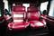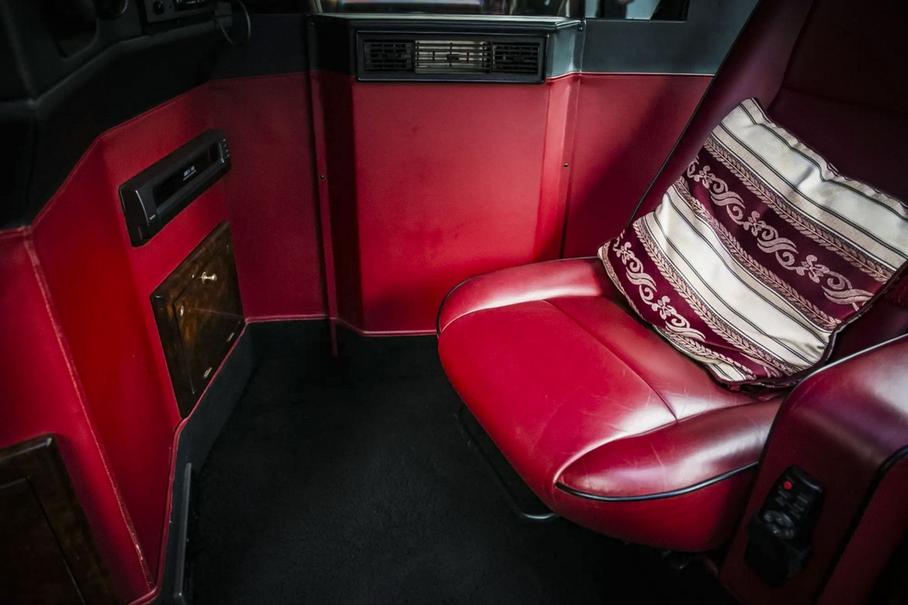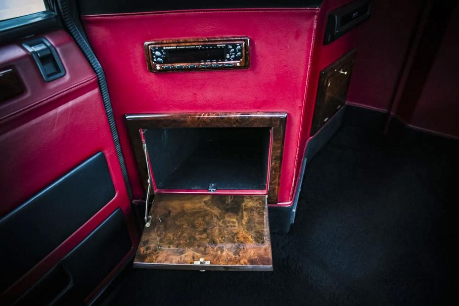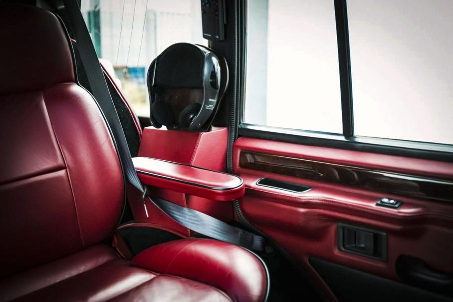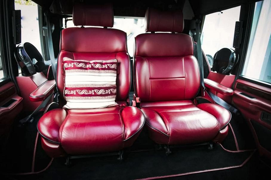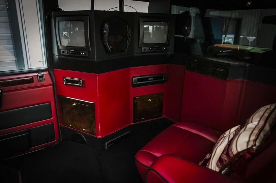 В салоне инженеры установили три раздельных кресла, отделанные красной кожей и натуральным деревом. Кроме того, внедорожник оснастили перегородкой между водителем и пассажирами, а также двумя телевизорами с проигрывателем видеокассет и CD-плеером.