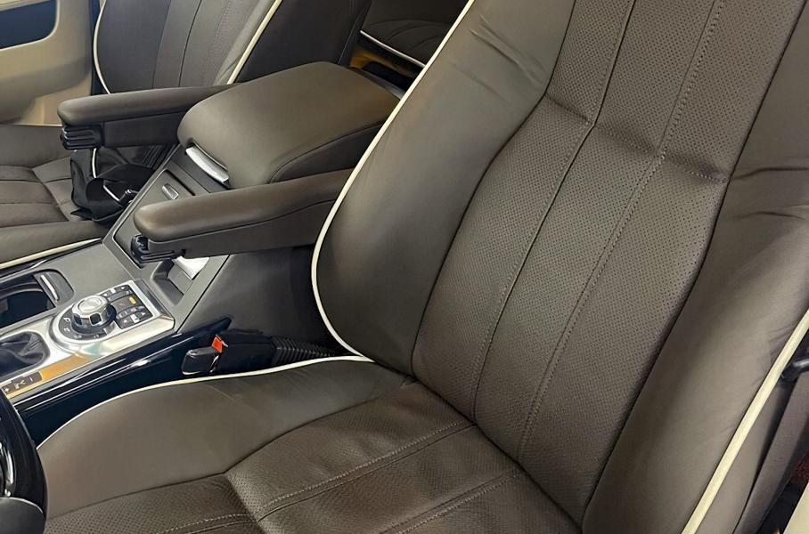 Салон отделан двухцветной кожей, для задних пассажиров предусмотрены два отдельных экрана мультимедийной системы. Под капотом установлен компрессорный V8 5.0 мощностью 510 лошадиных сил и 625 Нм крутящего момента. На разгон до 100 километров в час уходит 6,1 секунды, а максимальная скорость ограничена отметкой 225 километров в час.