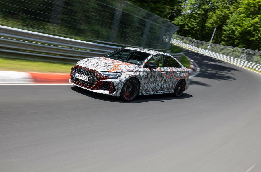 Рестайлинговая модель свергла с пьедестала BMW M2На этот раз закамуфлированный «заряженный» седан под управлением заводского тест-пилота бренда Фрэнка Стипплера промчался по Северной петле за 7 минут 33,12 секунды. После заезда гонщик заявил, что главным преимуществом обновленного Audi RS 3 является тонкая настройка шасси, в том числе системы векторизации тяги. Новый сетап добавил автомобилю управляемости и позволил раньше ускоряться на выходе из поворотов.