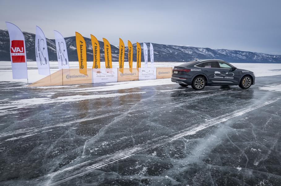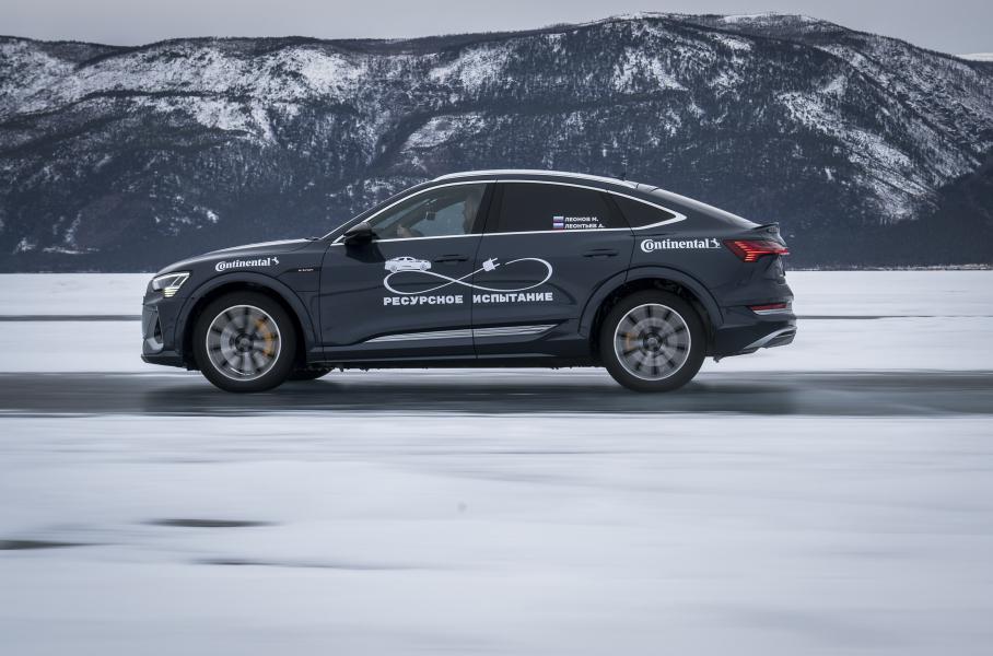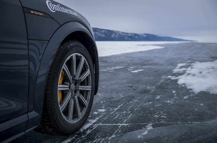 Специально для испытания электрокроссовер обули в нешипованные покрышки Continental VikingContact 7, которые подобрали с учётом веса резины, а также необходимостью не допускать серьёзных пробуксовок на льду. Подобные шины позволяют разогнаться на льду до 190 километров в час.