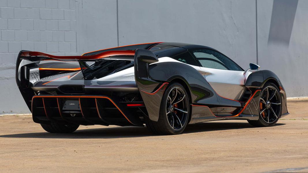 Интерьер отделан в цветах Volcano Orange, Carbon Black и Liquid Papaya, которые дополняют карбоновые элементы. Как отмечено в описании лота, заказчик пожелал оформить свою машину в стилистике концепт-кара McLaren Vision Gran Turismo, представленного еще в 2017 году.