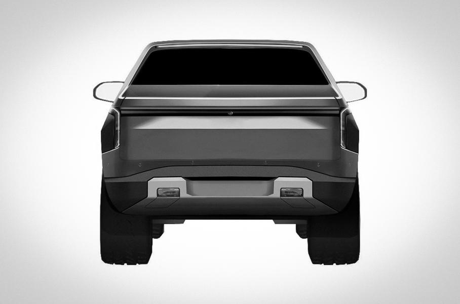 У будущего пикапа характерная выштамповка по бокам, отсылающая к Cybertruck Илона Маска, светодиодная полоса спереди во всю ширину кузова и вертикальные линии дневных ходовых огней. Снизу расположены тонкие блоки дальнего света. К другим особенностям внешнего вида можно отнести выдвижные дверные ручки и массивные колесные арки, который отличаются по цвету от кузова. CarNewsChina также обращает внимание на то, что грузовая платформа выглядит короче, чем у полноразмерных пикапов.