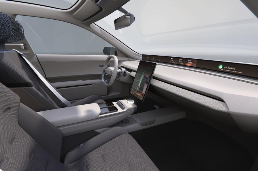 Вместо обычной «приборки» Skoda разместила под лобовым стеклом узкий дисплей Horizon Display — подобный подход можно увидеть у BMW. Центральный экран имеет портретную ориентацию, а под ним видны «шайба» для выбора режимов езды, несколько физических клавиш и отсеки для беспроводной зарядки телефонов. Управлять некоторыми функциями можно и с помощью голосового ассистента Laura, которой внедрили ИИ.