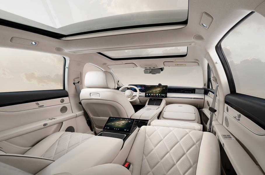 Новая порция снимков раскрывает внутреннее убранство S9, но подробностей пока нет. Китайские СМИ пишут, что седан получит обивку из кожи «наппа» (задние кресла сделаны по технологии Zero Gravity), декоративные накладки из натурального дерева и аудиосистему Huawei. Все сиденья будут оснащены подогревом, вентиляцией и массажем. А ещё на электрокаре дебютирует интеллектуальная система вождения Huawei Qiankun ADS 3.0, которая работает на базе ИИ и может, к примеру, припарковать машину без контроля со стороны человека.