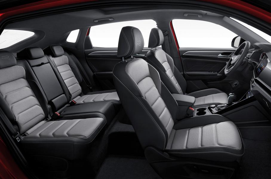 Интерьер семейства Volkswagen Tayron практически идентичен. Купеобразной версии штатно положены виртуальная приборная панель, медиасистема с 9,2-дюймовым экраном, панорамная крыша с электролюком и сенсорный блок климат-контроля вместо трёх вращающихся рукояток. Вдобавок, отличается мультируль, в списке стандартного оборудования есть подогрев передних сидений, круиз-контроль и система автоматического торможения.