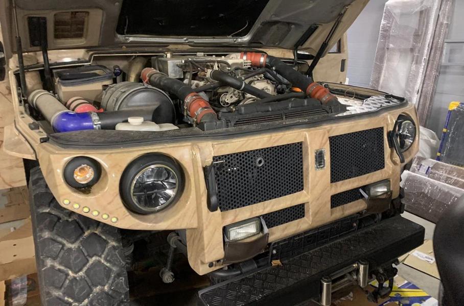 Тюнеры из ателье TuningUp взялись за модернизацию машины в 2011 году. В рамках работ специалисты полностью перешили интерьер бежево-коричневой кожей. В салоне появилась мультимедийная система с телевизором, холодильник, а также множество сервоприводов и радиосвязь. Кроме того, автомобиль оснастили экспедиционным багажником, шноркелем, а также «люстрой» на крыше и лебёдкой.