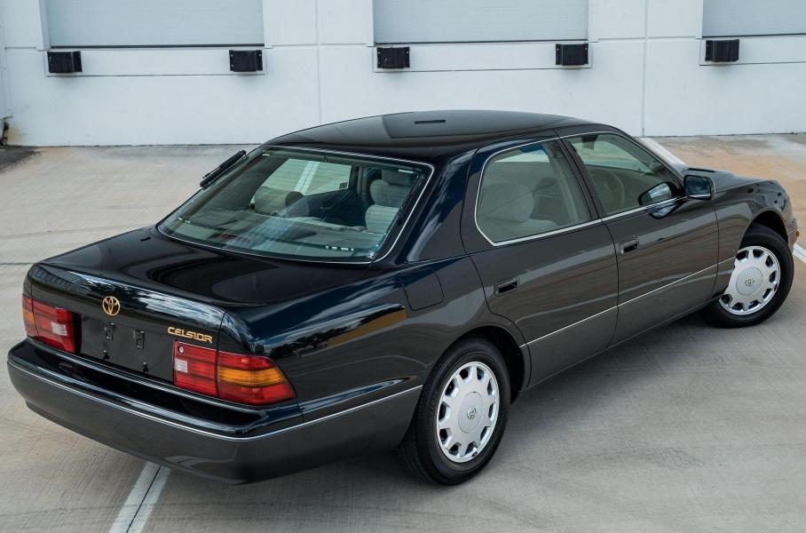 У проданного с аукциона Toyota Celsior необычный тёмно-зелёный цвет; нижняя часть кузова окрашена в серый колер. Техника стандартная: под капотом атмосферный 4,0-литровый бензиновый двигатель 1UZ-FE (269 лошадиных сил, 362 Нм), который передаёт тягу на задние колёса через 4-скоростной «автомат». За 10 520 километров легендарный мотор едва прошёл обкатку.